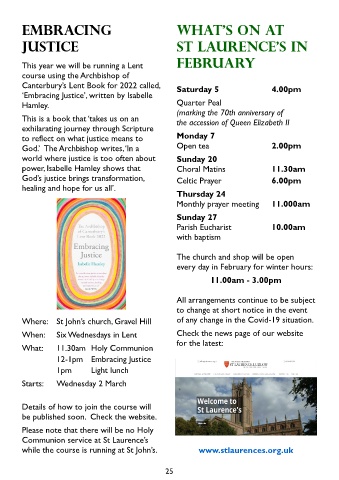 while the course is running at St John’s. www.stlaurences.org.uk