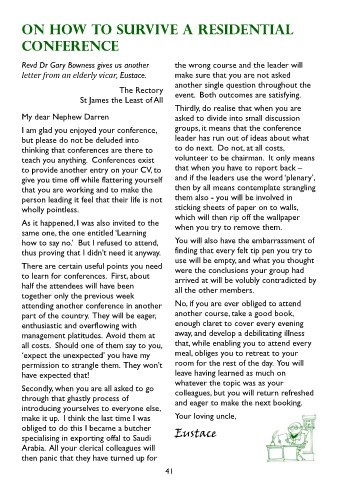 letter from an elderly vicar, Eustace. make sure that you are not asked