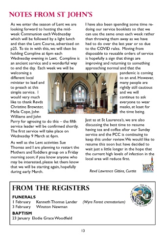 Wednesday 9 March at 6pm. service and the PCC is continuing to