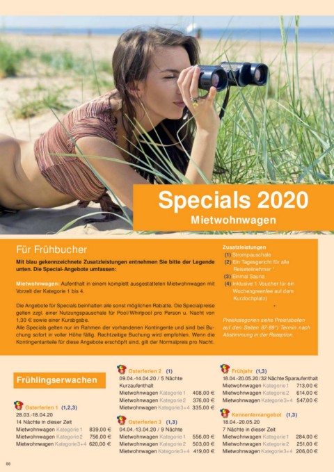 Specials 2020 Mietwohnwagen Kategorie 2 693,00 € Mietwohnwagen Kategorie 2 323,00 €