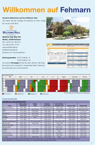 bei uns auf einen Blick. Wulfener Hals Weg 100 Wulfen, 23769 Fehmarn Tel. +49 (0) 4371-86 28-0 Fax +49 (0) 4371-37 23 www.wulfenerhals.de info@wulfenerhals.de facebook.com/campingfehmarn Buchungshotline: (0 43 71) 86 28 - 21 (0 43 71) 86 28 - 53 le und können auch online bezahlen. Saisonzeiten für 2021 April März 16 15 14 14 13 12 11 10 KW 12 5 29 22 15 8 1 Mo. 13 6 6 30 23 16 9 2 Di. 714 31 24 17 10 3 Mi. 15 8 1 1 25 18 11 4 Do. 16 9 2 26 19 12 5 Fr. 17 10 310 27 20 13 6 Sa. 18 411 28 21 14 7 So. Ferienkalender Schulferien in Deutschlan