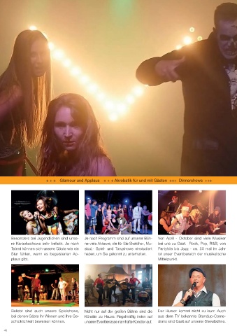 Talent können sich unsere Gäste wie ein sical,- Spiel- und Tanzshows einstudiert Partyhits bis Jazz - ca. 50 mal im Jahr