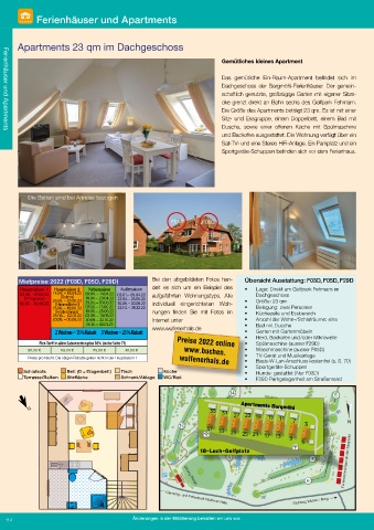 02.07. - 20.08.22 (Himmelfahrt) 29.05. – 03.06.22 10.09. – 30.09.22 individuell eingerichteten Woh- • Größe: 23 qm