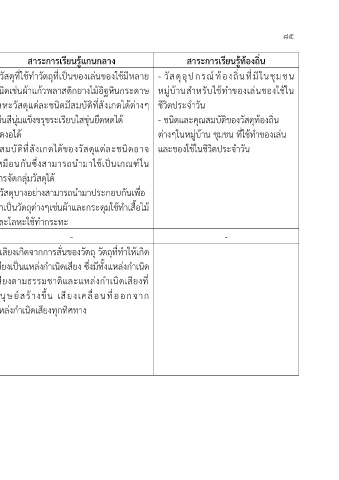 สาระที่ ๒ วิทยาศาสตร์กายภาพ ๑. อธบายสมบัติที่สังเกตได้ของวสดุที่ • วสดุที่ใชทำวตถที่เป็นของเล่นของใชมีหลาย - วสดุอุปกรณท้องถนที่มีในชมชน