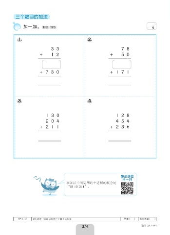 SP 2.1.2 进行和在 1 000 以内的三个数目连加法 掌握 ( ) 尚未掌握 ( )