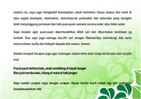 Adalah menjadi harapan juga agar hubungan silaturrahim akan tetap berterusan dan terjalin