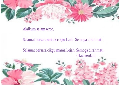 Alaikum salam wrbt, Selamat bersara untuk cikgu Laili. Semogadirahmati. Selamat bersara cikgu mama Lejah. Semogadirahmati. -HazleenJalil