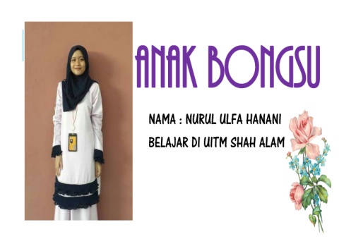 ANAK BONGSU NAMA : NURUL ULFA HANANI BELAJAR DI UITM SHAH ALAM
