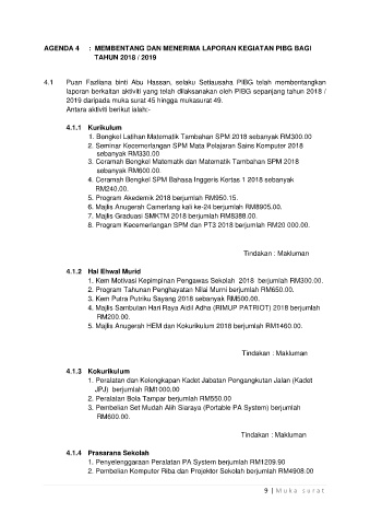 4.1 Puan Fazliana binti Abu Hassan, selaku Setiausaha PIBG telah membentangkan
