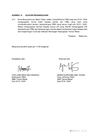 12.1 Encik Norsyahrim bin Abdul Tahar, selaku Yang DiPertua PIBG bagi sesi 2019 / 2020