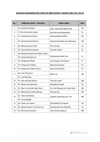 SENARAI KEHADIRAN IBU BAPA KE MESYUARAT AGUNG PIBG KALI KE-26