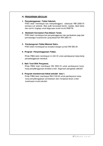 Pihak PIBG telah membiayai rm 240.00 untuk pembayaran kerja-kerja