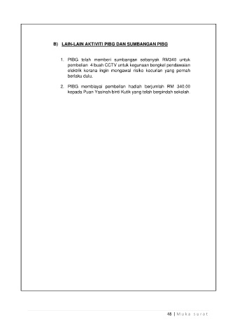 B) LAIN-LAIN AKTIVITI PIBG DAN SUMBANGAN PIBG