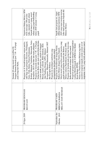 Oktober 2019 BERJAYA BAHASA Bahasa Melayu dengan Panitia Sejarah. dilihat dalam keputusan SPM