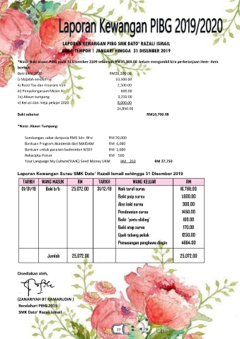 *Nota: Baki akaun PIBG pada 31 Disember 2109 sebanyak RM35,300.08 belum mengambil kira perbelanjaan item- item