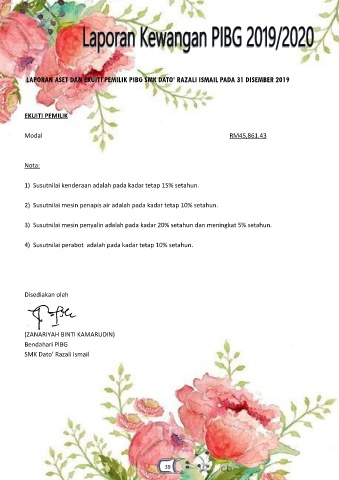 LAPORAN ASET DAN EKUITI PEMILIK PIBG SMK DATO’ RAZALI ISMAIL PADA 31 DISEMBER 2019