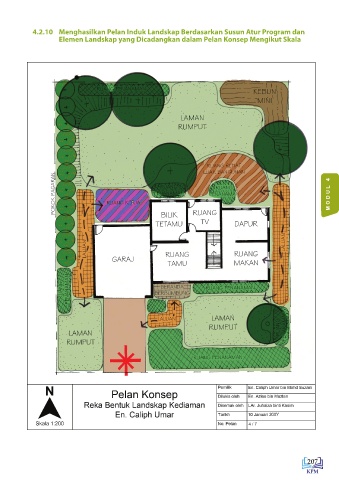 4.2.10 Menghasilkan Pelan Induk Landskap Berdasarkan Susun Atur Program dan Elemen Landskap yang Dicadangkan dalam Pelan Konsep Mengikut Skala 4 4 MODUL MODUL 207