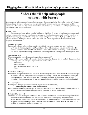 genuine interest in the buyer’s needs. These five ideas can help salespeople create that comfort with