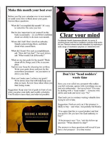 Suggestion: Keep your list of goals in front of you be dealing with a “head nodder” – someone who