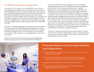 to MSM established The Office of Community Engagement in 2016. Led by Dr. partnerships and people working together to promote healthy communities