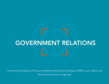 GOVERNMENT RELATIONS Informing & Analyzing Policy and Relationship Building Shapes MSM’s Local, State and National Government Agenda.