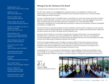 Chairman of the Board Retired, Former Partner Ernst & Young Greetings Friends of Morehouse School of Medicine: