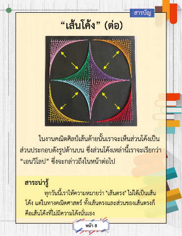 ในงานคณิตศิลป์เส้นด้ายนั้นเราจะเห็นส่วนโค้งเป็น