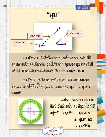 ของมุม แบ่งได้ดังนคือ มุมฉาก มุมแหลม มุมป้าน มุมตรง