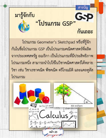 กันในชื่อโปรแกรม GSP เป็นโปรแกรมคณิตศาสตร์ที่ผลิต