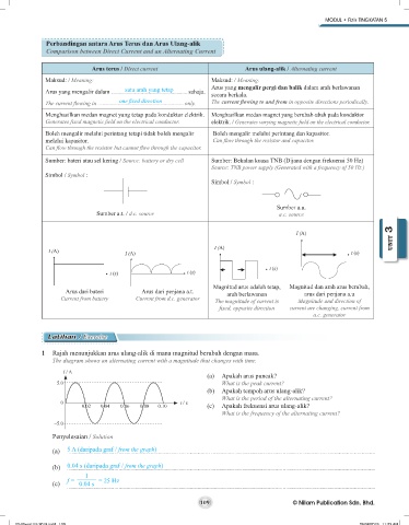 1 Rajah menunjukkan arus ulang-alik di mana magnitud berubah dengan masa.