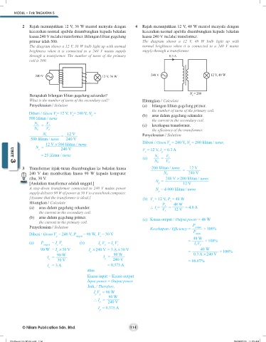 Diberi / Given V = 12 V, V = 240 V, N = (b) arus dalam gegelung sekunder.