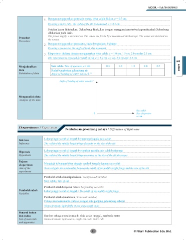 Menjadualkan Saiz celah / Size of aperture, a / cm 0.5 1.0 1.5 2.0 2.5 UNIT 1