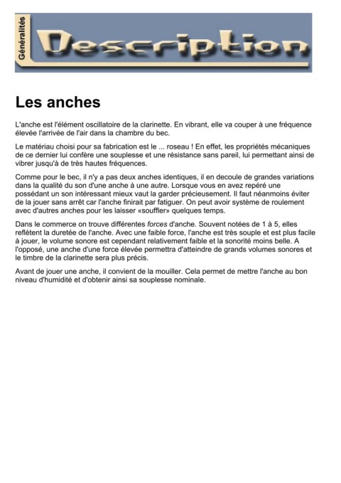 Comme pour le bec, il n'y a pas deux anches identiques, il en decoule de grandes variations