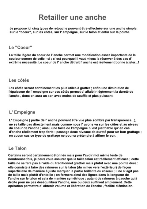 Je propose ici cinq types de retouche pouvant être effectuée sur une anche simple: