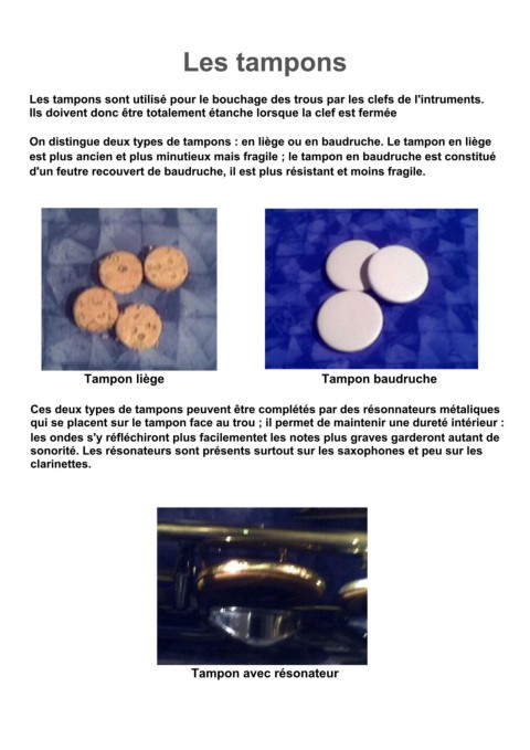 Les tampons sont utilisé pour le bouchage des trous par les clefs de l'intruments.