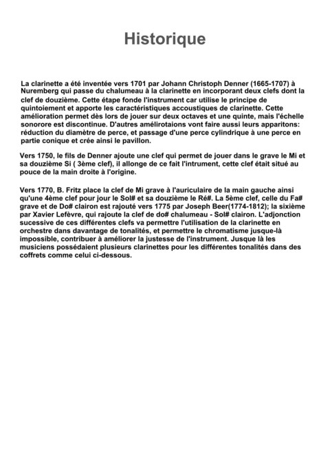 sucessive de ces différentes clefs va permettre l'utilisation de la clarinette en