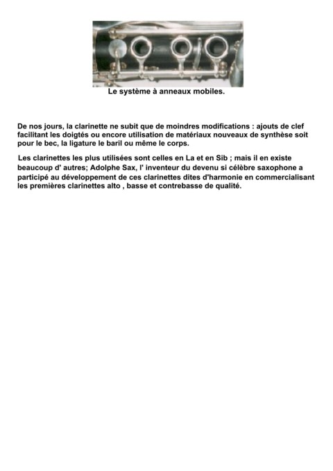 De nos jours, la clarinette ne subit que de moindres modifications : ajouts de clef