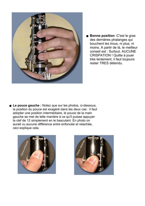 Le pouce gauche : Notez que sur les photos, ci-dessous,