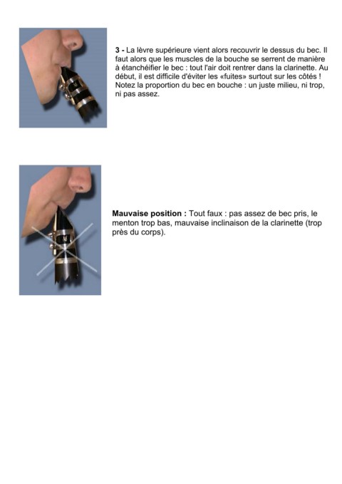 à étanchéifier le bec : tout l'air doit rentrer dans la clarinette. Au