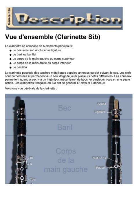 action. Les clarinettes française en Sib ont en général 17 clefs et 6 anneaux.