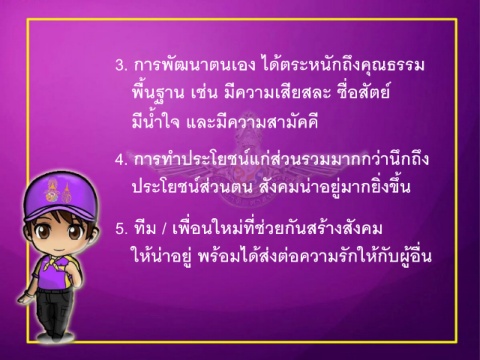 3. การพัฒนาตนเอง ได้ตระหนกถึงคณธรรม