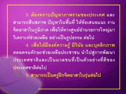 5. สามารถเปนครูฝกจิตอาสาในรนต่อไป