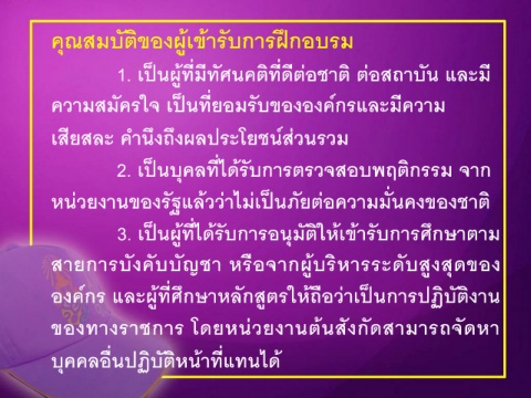 1. เปนผูที่มีทัศนคติที่ดีต่อชาติ ต่อสถาบัน และมี