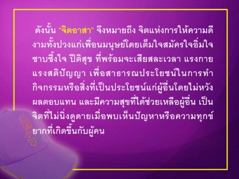 ดังน้น “จิตอาสา” จึงหมายถึง จิตแห่งการให้ความดี