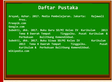 Arsyad, Azhar. 2017. Media Pembelajaran. Jakarta: Rajawali