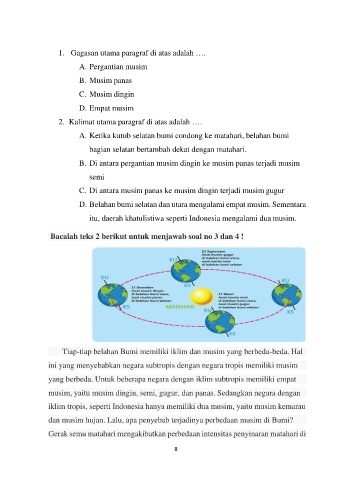 D. Belahan bumi selatan dan utara mengalami empat musim. Sementara