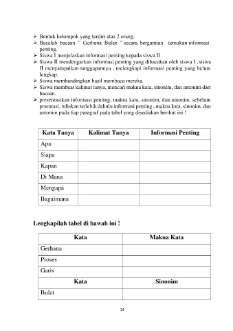 ➢ Bacalah bacaan ” Gerhana Bulan ” secara bergantian temukan informasi