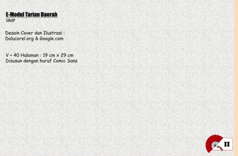 E-Modul Tarian Daerah SBdP Desain Cover dan Ilustrasi : Dalucorel.org & Google.com V + 40 Halaman : 19 cm x 29 cm Disusun dengan huruf Comic Sans II