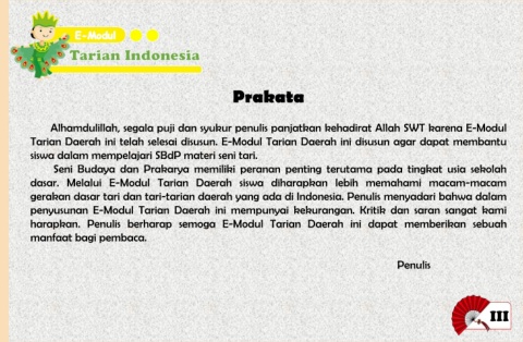 harapkan. Penulis berharap semoga E-Modul Tarian Daerah ini dapat memberikan sebuah