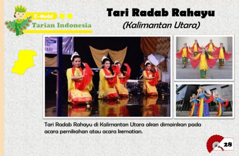 Tari Radab Rahayu (Kalimantan Utara) Tari Radab Rahayu di Kalimantan Utara akan dimainkan pada acara pernikahan atau acara kematian. 28